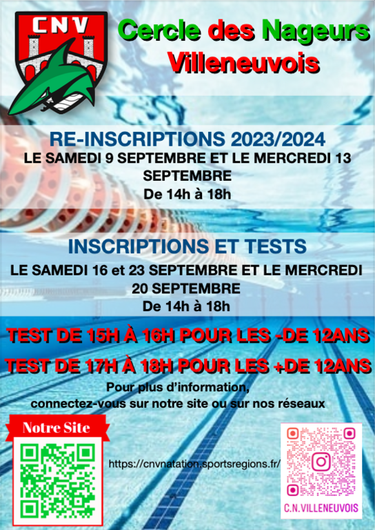 La rentrée approche à grands pas, et avec elle revient l'excitation de replonger dans les bassins avec le CNV ! Nous sommes ravis de vous accueillir pour une nouvelle saison aquatique pleine de défis, de camaraderie et de performances.