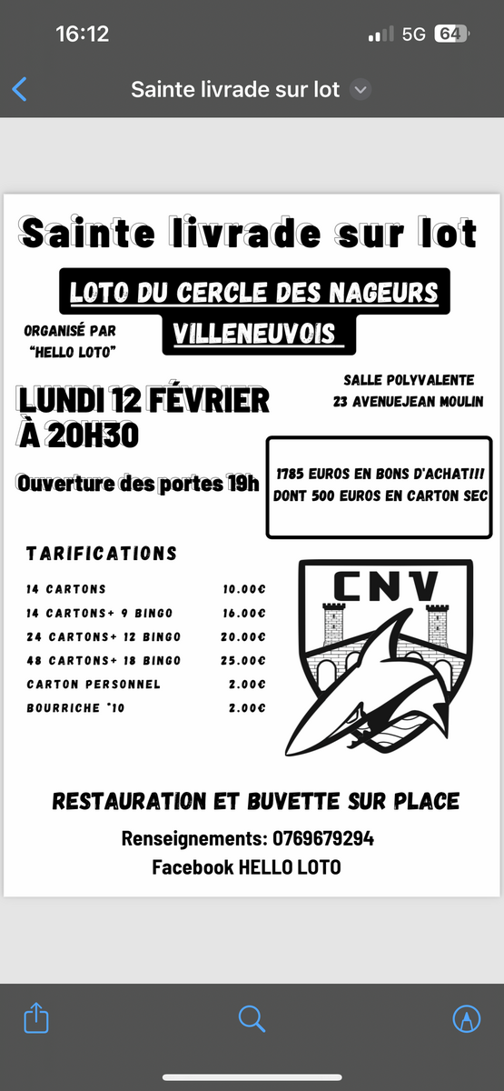 On se retrouve vite le 12 février à la salle polyvalente de sainte livrade à partir de 19h !!🥳
